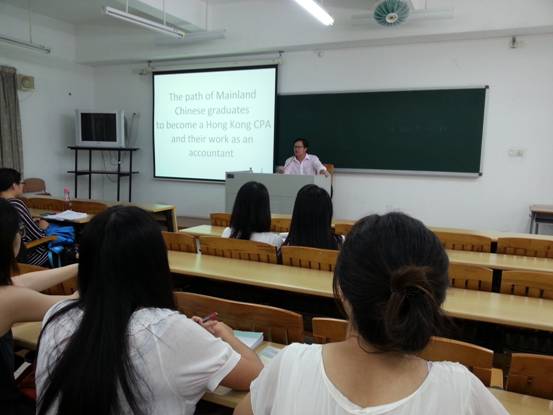 6月24日晚六点半,受威尼斯官网国际商务系会计课程组邀请,香港会计师公会资深会员Allan.law为威尼斯官网师生做了一场题为“The path of Mainland Chinese graduates to become a Hong Kong CPA and their work as an accountant(大陆学生成为一名香港注册会计师及其会计职业之路)”的讲座。Allan是香港会计师公会资深会员,长期担任香港注册会计师考试的程辅导人员。曾任Sino-HK的CEO以及担任Association of Hong Kong Professionals的会董,具有丰的实践工作经验。